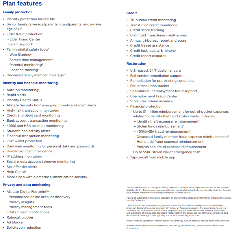 Protect your identity from data breaches with Allstate Identity Protection’s Pro+ Plan. This benefit helps you safeguard your finances, reputation and credit against theft and abuse with unique tools and proactive monitoring.